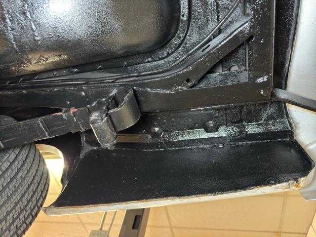Fully restored with a fresh coating of black paint, we note a new fuel cell, some traction bars and leaf springs for the back with drum brakes. For the lighter front end, an I beam with leaf springs is on and disc brakes live here. All is very solid and looking like new with no rust or road dirt to speak of.