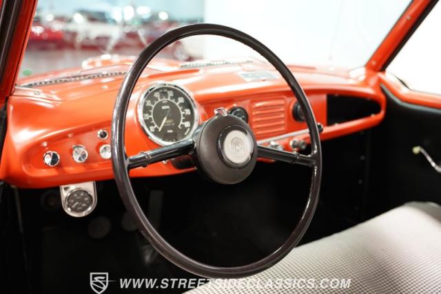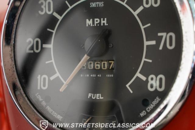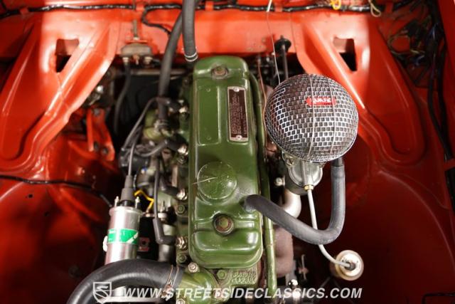 Under the hood, this Metropolitan is powered by a 1200cc engine and British green painted block, paired with a non-synchronized 3-speed manual transmission featuring a longer B-Series gearbox, while all hoses and wiring are in good condition. The vehicle has been upgraded with front disc brakes, a significant improvement over the original setup. This Nash Metropolitan starts easily and idles smoothly, offering a fun and unique driving experience.