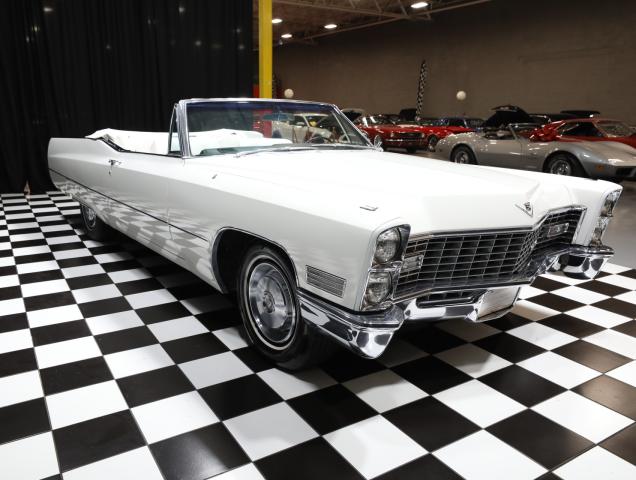 Cadillac DeVille ConvertibleClassic 1967 Cadillac DeVille Convertible White on White Fully EquippedThis 1967 Cadillac DeVille Convertible is a pristine example of American luxury from the 1960s. Powered by a 429 CI V8 engine and paired with a smooth automatic transmission, it delivers effortless cruising in iconic Cadillac style.Exterior & InteriorWhite exterior with matching white interiorPower white convertible topSpacious, luxurious cabin with classic Cadillac designFeatures & AmenitiesAir conditioning for comfortable drivesPower steering and power brakesPower windows and power seatSmooth automatic transmission for relaxed cruisingThis 1967 Cadillac DeVille Convertible combines classic styling, a powerful V8, and fully functional luxury features, making it ideal for collectors, weekend cruising, or enjoying open-air motoring in true 1960s Cadillac elegance.