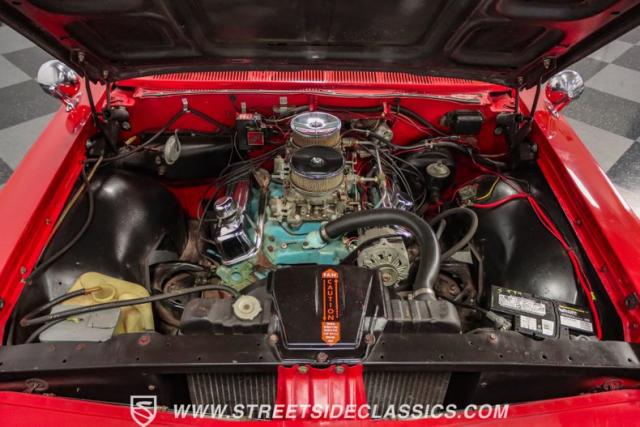 Lifting the hood reveals a potent 455 cubic inch V8 engine, a later addition that significantly boosts this Grand Prix\'s performance. This powerplant breathes through dual 4-barrel Carter carburetors mounted on an Offenhauser intake manifold, promising impressive output. The engine is mated to a robust 4-speed manual transmission, allowing for full control over the V8\'s power delivery. The dual exhaust system with Xlerator mufflers provides a fitting soundtrack for this classic cruiser. Power steering and power drum brakes ensure confident handling and stopping power.
