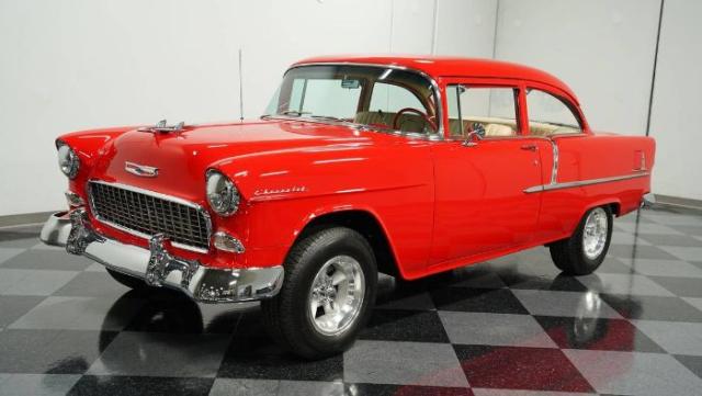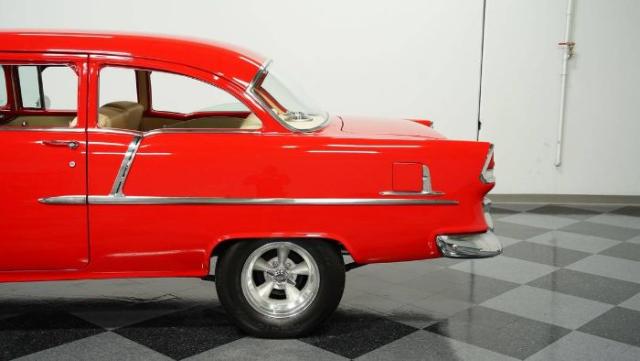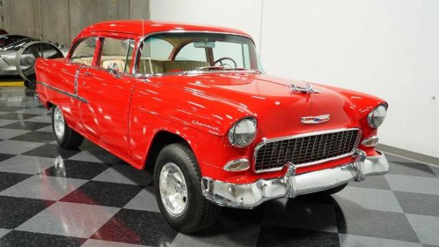 1955 CHEVY 210 350 CUBIC INCH SMALL BLOCK V8, High quality restoration, POWER STEER/FRONT DISC Stunning 1955 Chevy 210. Has had a comprehensive, every nut and bolt, frame-off rotisserie restoration. All the custom and upgraded parts were carefully selected to represent the era. This Chevy has been used sparingly and has been garage stored. This car has been a favorite at many car shows. The leaf springs, front end, steering box have all been replaced and drilled and slotted front rotors have been added. Interior completed by Ciadella interiors in a fawn-colored leather that features front and rear seatbelts, a stock dash, 15\' retro style steering wheel, AM/FM cassette with 6x9 speakers in the rear. New window regulators, wiper motor, glass and rubber weather stripping. Full rotisserie, frame-off restoration Rebuilt 350 engine TH400 automatic transmission Restored vintage pre 1970 American Racing wheels Air conditioning, heat and defrost Power steering Power front disc brakes Ciadella fawn colored leather interior Highly detailed, every nut and bolt, including undercarriage Seat belts Cassette player, AM FM radio Coil spring with shocks in front Leaf springs with air shocks in rear The engine in this classic \'55 Chevy 210 is a 350 V8, rebuilt in 2023 with a mild cam, 202 valves, 10.1 pistons, roller rocker arms, topped with airgap aluminum intake manifold with Edelbrock carburetor. Additionally, this car has an aluminum radiator, MSD ignition system, new American Autowire harness, power front disc brakes, power steering and a cold air conditioning system. Power is transferred to the rear wheel by a TH400 automatic transmission. The finishing touch is a set of hard-to-find vintage, pre-1970 American Racing Torque Thrust wheels with correct for the era two-prong twisted spinner center caps. This is truly a special \'55 Chevrolet restored with much attention to detail and quality. So much so, that it has been displayed with mirrors underneath