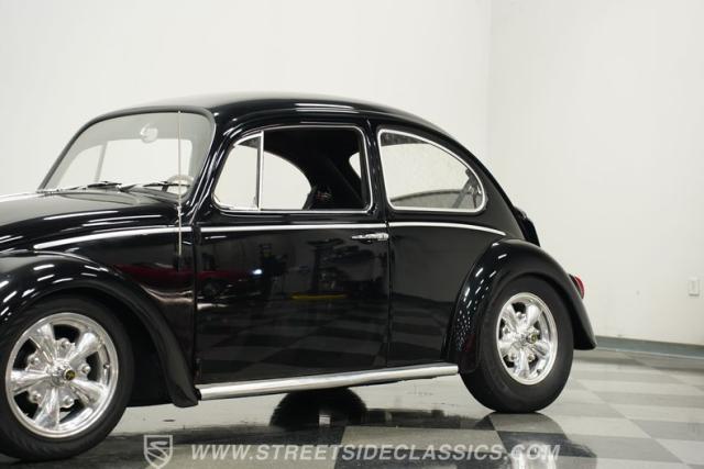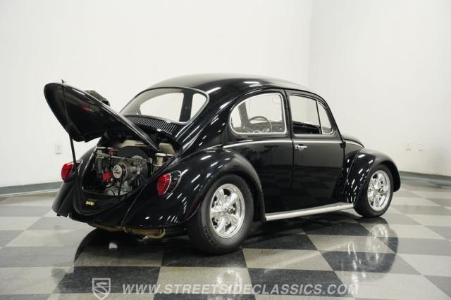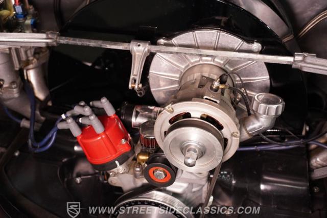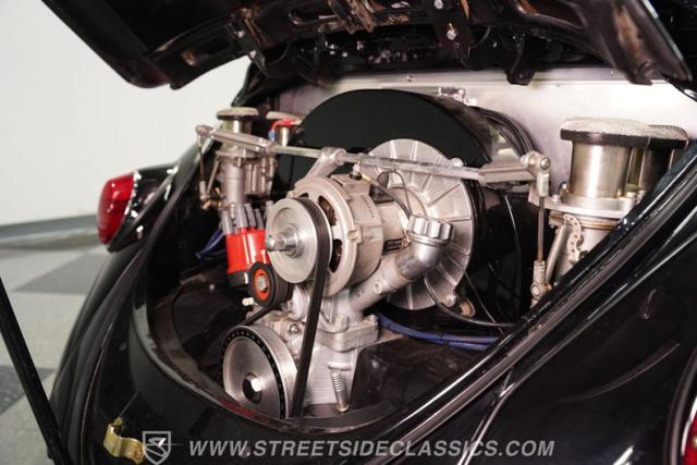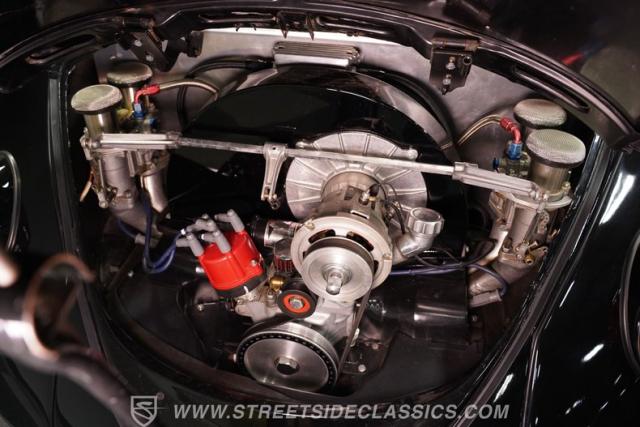 Beneath the rear decklid lies a robust 2276cc four-cylinder engine, rebuilt to exceed factory specifications and paired with a smooth-shifting 4-speed manual transmission. This Beetle boasts dual carburetors, manual steering, and manual brakes, providing a driving experience that\'s engaging and pure. The undercarriage is impressively clean and restored to factory condition, featuring a narrowed front beam with drop spindles and adjustable components for enhanced handling. The upgraded header-fed single exhaust adds a spirited note to this strong-running classic.