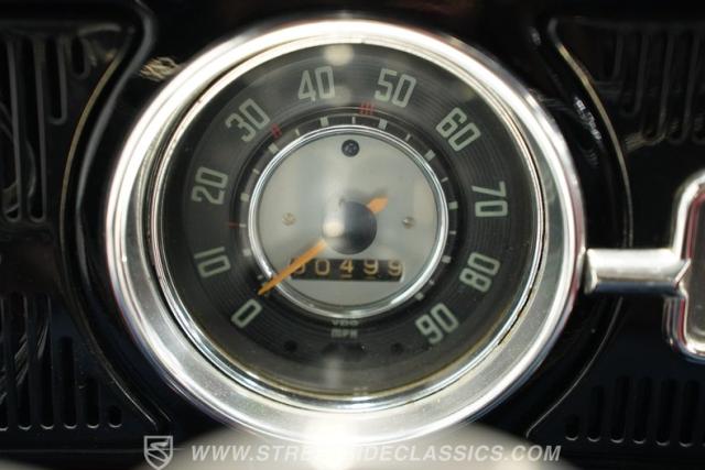 Step inside to discover a freshly restored interior featuring vibrant red vinyl sport bucket seats up front and a comfortable bench seat in the back. The cabin is accented with a wood-rimmed sports steering wheel and TMI seat covers, combining classic aesthetics with modern comfort. The floor shifter and new gauges add to the driving experience, all while maintaining the car\'s authentic charm. Every detail speaks to quality and care, delivering a space that\'s both inviting and stylish.