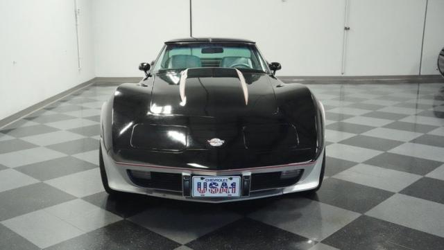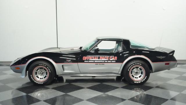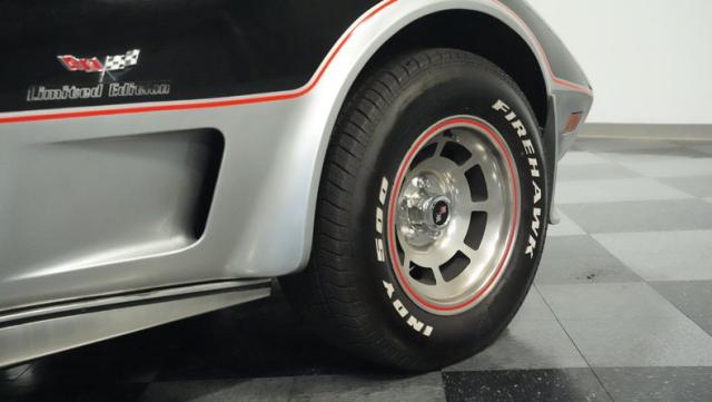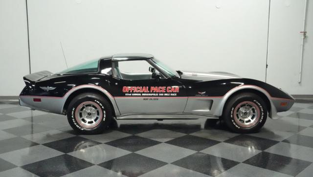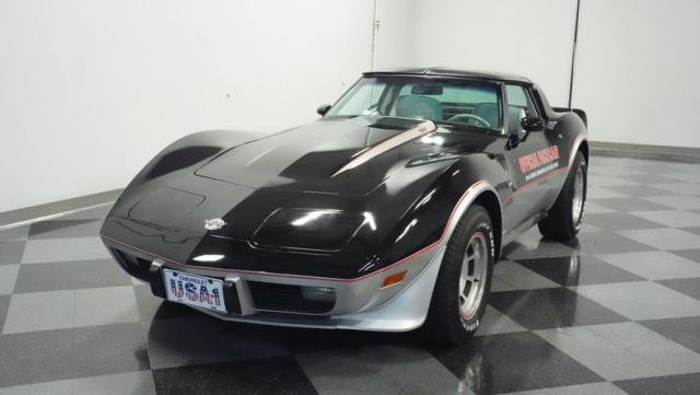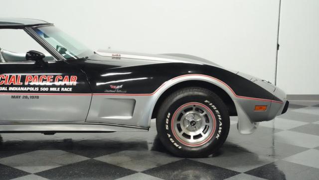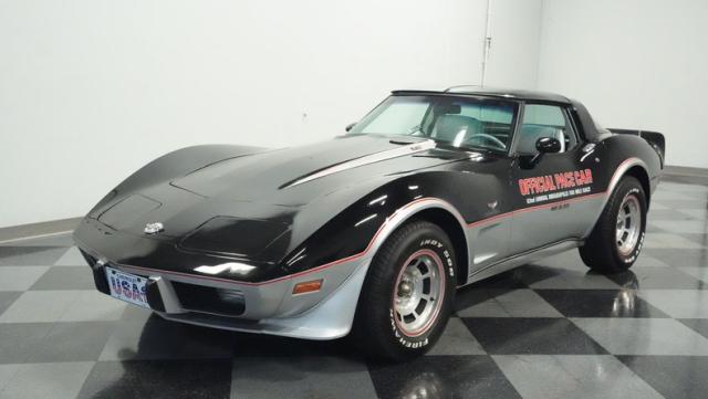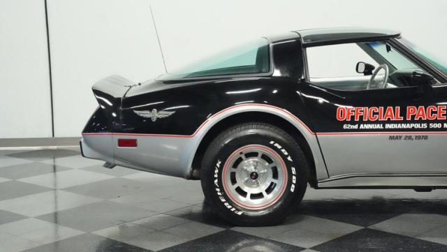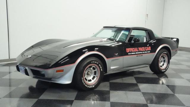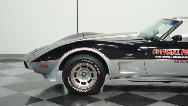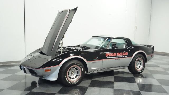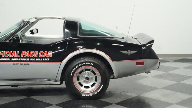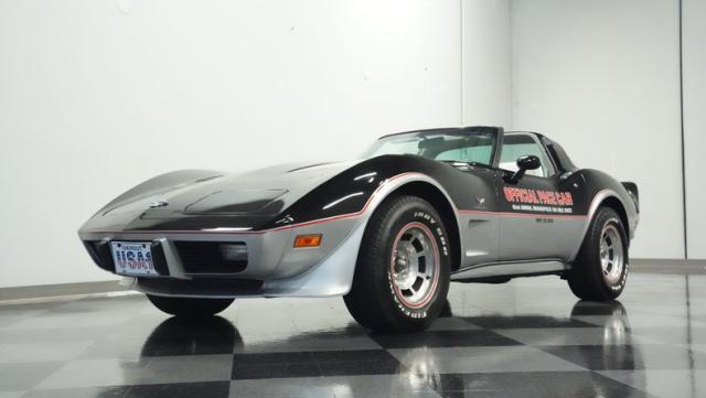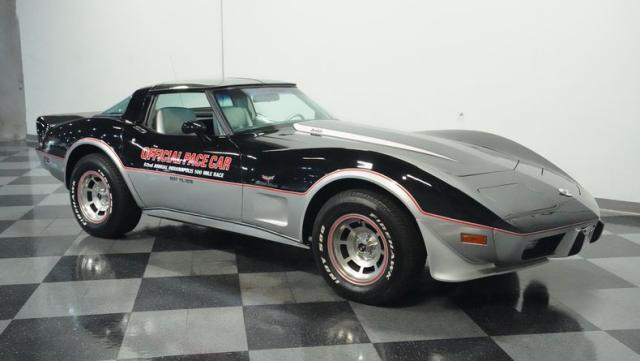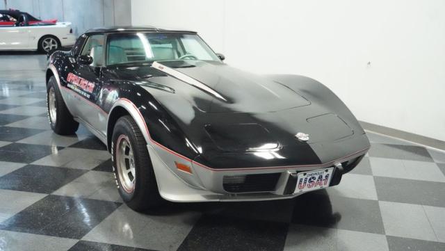 This 1978 Chevrolet Corvette L-82 Pace Car led the field at the Indianapolis 500 - America\'s most prestigious race. With just 6,990 believed actual miles, this special edition rocks the official black and silver livery that ignited the crowds at the Brickyard. The iconic design features official Indy 500 graphics and red accent striping that amplify its racing pedigree. The removable T-tops open up the cockpit, while 15-inch polished aluminum wheels wrapped in 255/60R15 tires plant this piece of racing history firmly on the street.