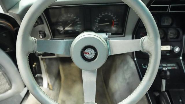 The silver leather cockpit channels pure Indianapolis racing spirit. Racing-inspired bucket seats keep you planted through the corners while the factory console-mounted shifter sits perfectly positioned. The AM/FM 8-track stereo provides the soundtrack, while air conditioning and power steering deliver excellent control. The original clear protective steering wheel cover remains in place - a remarkable detail that verifies this Corvette\'s preserved condition.