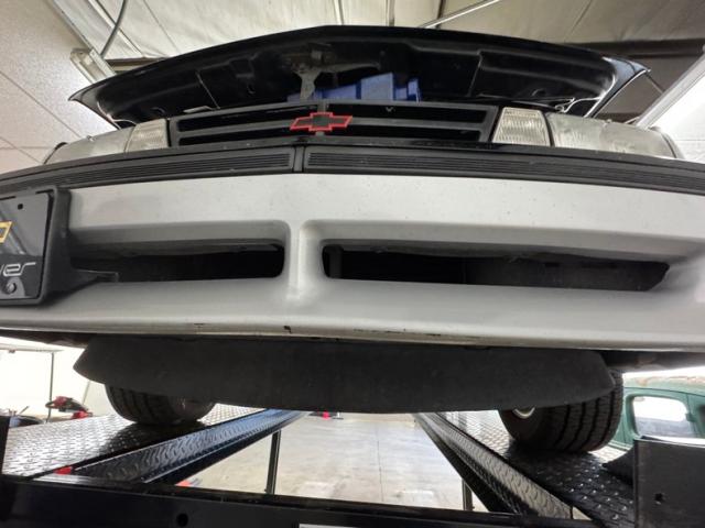 It wouldn\'t be 80\'s without velour and that begins on the door panels, in gray, over a carpeted lower panel, showing a touch of age but intact and featuring plastic switchgear. The bucket seats also take on two shades of gray with a striped pattern in the center and dark gray piping around the front buckets and rear seats, all showing without rips and very little wear. A two spoke steering wheel opens to a digital dash, space age in the 80\'s, with bar graphs showing progressive quantifiers and colorful indicator lights in black, horizontal panels. The A/C panel matches the Delco AM/FM/Cassette radio in the center stack while a later model Alpine CD deck resides below it. The plastic center console houses the shifter and shows some wear, nothing a little interior paint couldn\'t remedy. Gray carpet below is protected by Z24 mats and the trunk is clean and houses an amplifier.