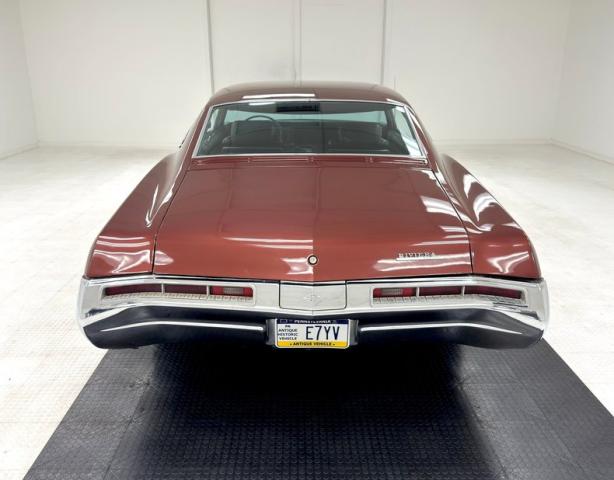 A luxury car combined with a sports car is the mantra for this 1969 Riviera and the fascia, redesigned for \'68, is striking in its uniqueness which is quite the feat because \'67 was unique in its own right. Inboard hidden headlights become part of the grille while bold marking lights provide square beacons on the outer edge of a chrome bumper that is as much an aesthetic frame as a safety device. Our car wears a coat of Copper Mist, the color it was born with, and is dressed up with a polished rocker panel, wide window trim, and Riviera spelled out on each of its four sides. Polished 15-inch chrome steel wheels and adherent shiny hubcaps add even more flash to the fastback-like profile that ends with a tail that rivals the front for interest, inset longitudinal tail lights appear to squint at the base of a sloping deck lid and flow through vents, and they\'re embedded in a chrome bumper that wraps around and contours along a circular side marker. The paint and panels are excellent and we could not find any glaring exterior flaws.