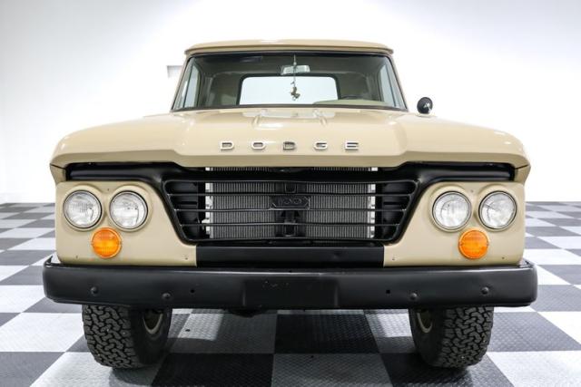 Under the hood, this D100 is powered by the legendary Chrysler Slant-6 engine, a design marvel introduced in 1959. Known for its reliability and smooth operation, the Slant-6 became a staple in Chrysler\'s lineup, powering a variety of vehicles from trucks to passenger cars. Paired with a 3-speed manual column-shift transmission, this setup offers a nostalgic driving experience that harks back to a time when driving was an engaged and tactile affair.