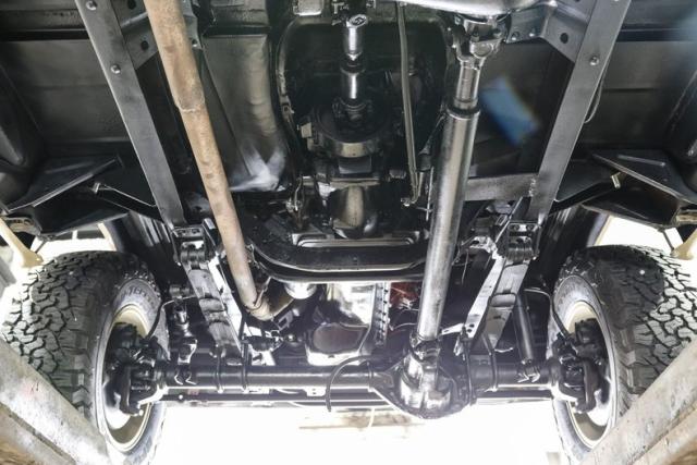 This D100 is equipped with several enhancements that improve both performance and comfort. The installation of front disc brakes and power steering ensures more responsive handling, while the aluminum radiator helps maintain optimal engine temperatures. The Offenhauser finned aluminum valve cover and 4-barrel intake, coupled with a Holley carburetor, suggest that this truck has been tuned for improved performance, adding a touch of muscle to its classic demeanor.