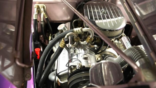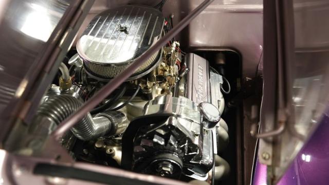 Underneath the double-door hood is a crate motor version of the venerable 350 cubic-inch V-8. Topping that motor is a single four-barrel Weber carburetor, while a set of shorty headers sends spent gasses out through a true-dual exhaust. That small-block power gets routed through a TH350 three-speed automatic transmission operated through a floor-mounted shifter.