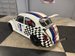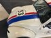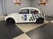 Painted White with Checkered flag with Red / Blue tape stripes. Magnet headlights in Bonnett, chrome Bonnett handle, tape #53 decal, glass fresh windshield. All other is plexiglass, Blue anodized custom outside mirrors, rear spoiler adjustable, original smooth type running boards, air vents on side back glass, rear tail lights, Stinger exhaust, custom VW rims painted black, front disc brakes, drum in rear. Looks good!