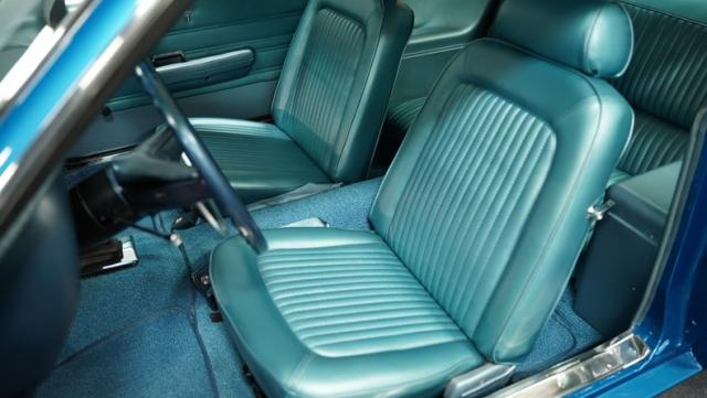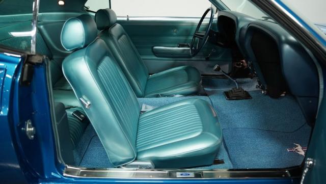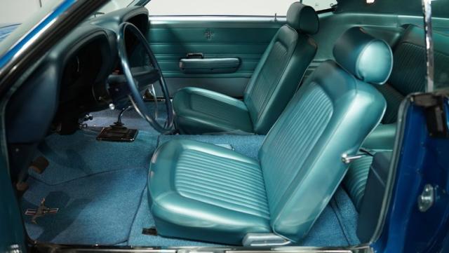 This particular 1969 Ford Mustang, in its striking Acapulco Blue, is powered by a date-correct 428 Cobra Jet V8 engine, paired with a close-ratio four-speed manual Toploader transmission. The engine block carries a date code of 8J25 (November 25th, 1968), adding to its authenticity. The car was produced Dec. 18th, 1968. The car\'s restoration, completed in March 2023, has been a labor of love, mainly undertaken by the consignor. It features aftermarket date-coded glass and seat belts, and a Holley carburetor that\'s a period-correct reproduction from Holley.