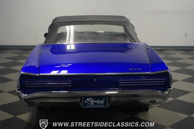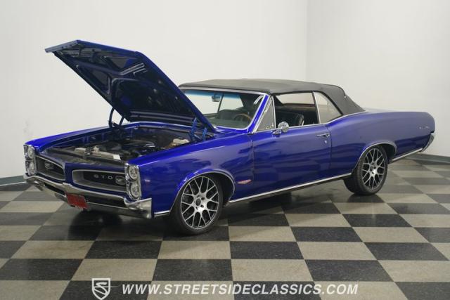 This spectacular 1966 Pontiac GTO Convertible Tribute has received a comprehensive, high-quality, frame-off restoration. All the GTO exclusive details were added during the restoration, including the famous GTO hood, grills, turn signals, badging and unique GTO tail-panel and taillights. Finished brilliantly in Custom House of Kolor \"Blurple\" with four coats of clear, the deep gloss of this paint is amazing to see. A set of 18-inch Niche wheels wrapped with performance tires staggered 235/40ZR18 front and 275/35ZR18 rear gives this Pontiac the perfect stance, and the LED halo headlights and LED tail lamps look great at night.
