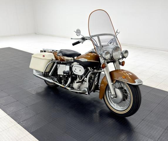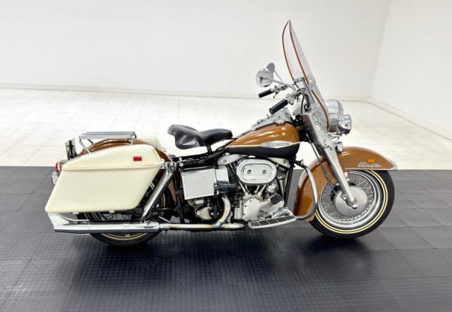 \"Harley-Davidson equipped the Electra Glide with electric start beginning in 1965, but the big change was to the Panhead engine the next year. The new \"Shovelhead\", (named because of the shape of the valve cover), had an aluminum head with a different shaped combustion chamber, and rocker arms attached to the rocker cover instead of to the head itself. While the base FL produced 54hp, the FLH made a full 60hp. The Electra Glide was a serious long distance tourer with a top speed just under 100 mph and a dizzying array of optional extras. By 1969, the factory \"King of the Highway\" package included a fiberglass fairing on the handlebars, hard saddlebags and a top case at the rear.\" Hagerty.com