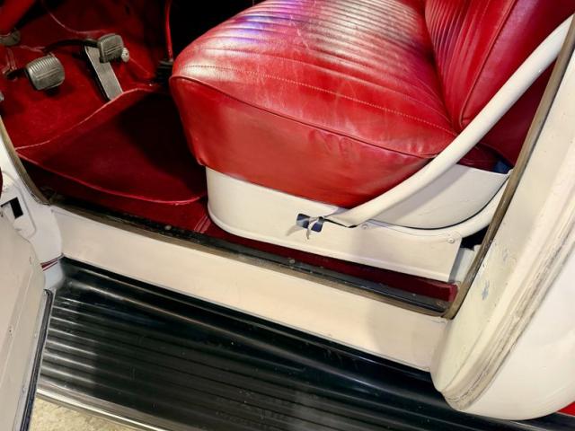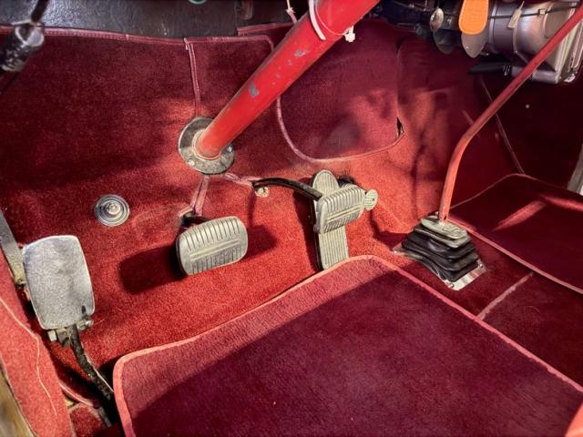 Inside, the red interior continues the classic theme, creating a sharp and inviting space. The seats are [Insert Condition Description: e.g., \"well-maintained,\" \"showing some wear,\" or \"recently reupholstered\"].
