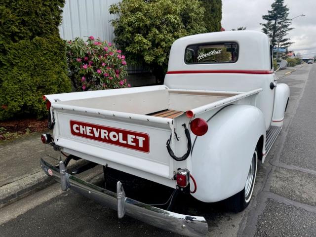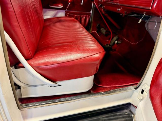 The details on this truck are what truly set it apart! The bed features a stunning finished oak wood floor, adding a touch of elegance and practicality to this workhorse. Rolling on Converse rims with stylish \"bonnet chrome\" hubcaps wrapped in narrow whitewall tires, this truck has a stance that demands attention.