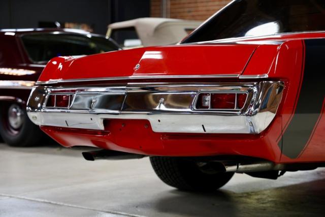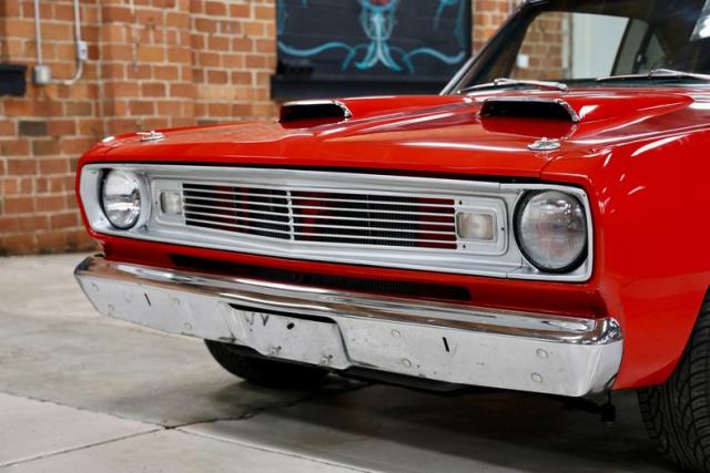 Visually, the car walks a perfect line between classic and custom. A \'69 Valiant grille conversion sharpens the front-end look, while shaved side markers clean up the body lines for a smoother, more aggressive appearance without losing the car\'s vintage identity.