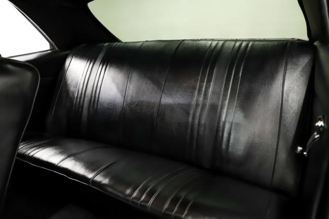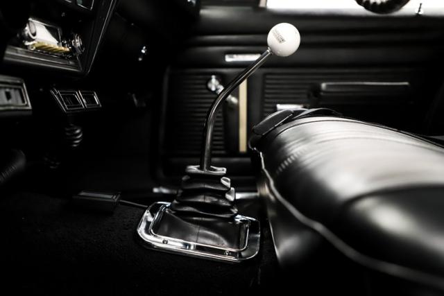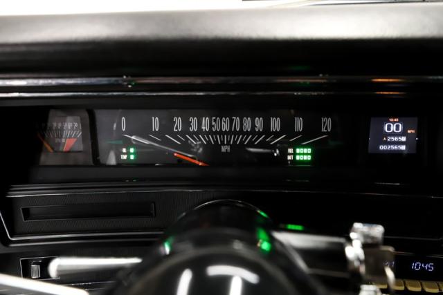 INTERIOR: Thoughtfully upgraded! They didn\'t lose the original look and that\'s what I really like about it. Several upgrades include Dakota digital gauge cluster with tachometer and digital display, tilt column, Vintage Air electric climate control, Retrosound digital stereo with hands-free calling, and Holley Terminator X touch screen controller. The headliner, sun visors, carpeting, dash pad, door panels, and rear shelf were all replaced. The front and rear bench seats were both recovered and feel fantastic. The new and upgraded 5 speed manual shifter sits proudly front and center for you driving excitement.
