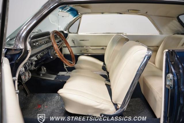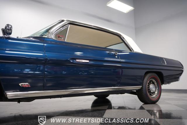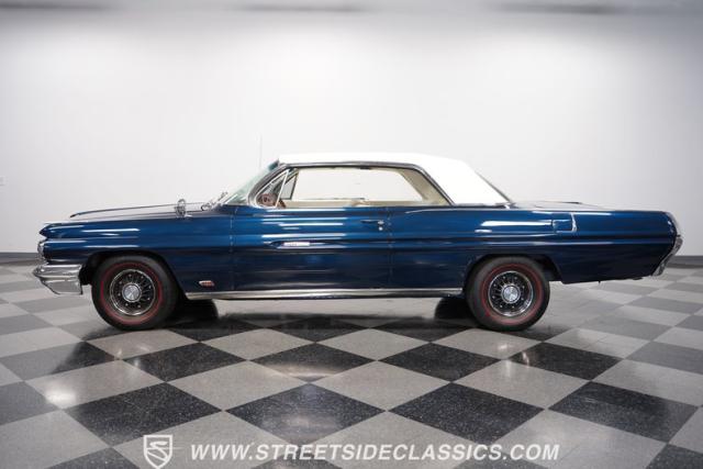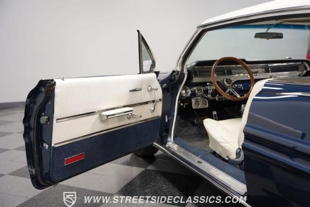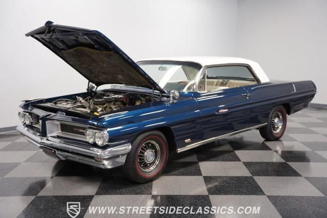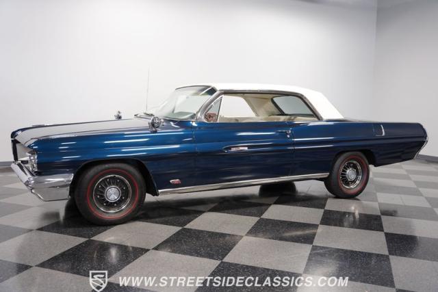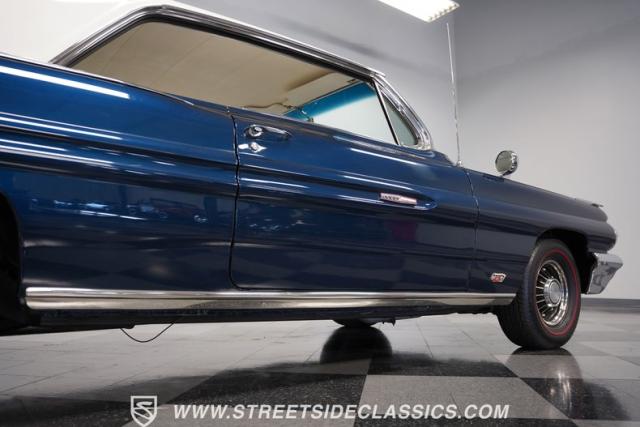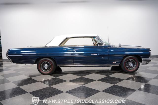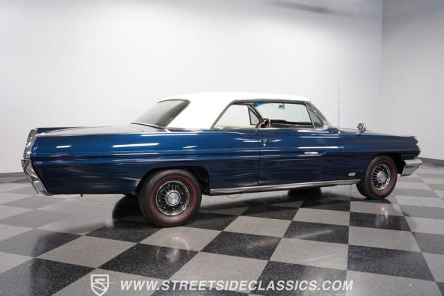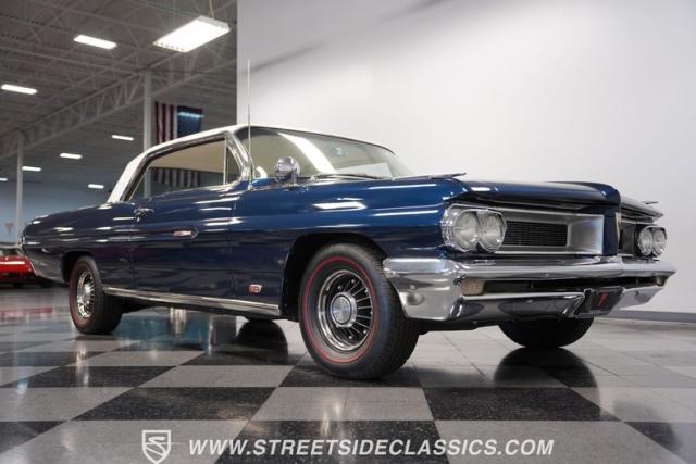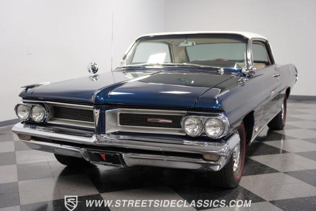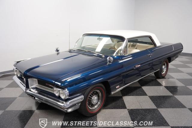 The 1962 Pontiac Grand Prix captures the essence of a momentous year when America reached for the stars. This car stands out with its 421 V8 engine and a white vinyl cockpit that puts you in command. The striking metallic blue, retro AM/FM stereo, and the rumble of its mighty engine are just the beginning of what makes this car unique. Call today!