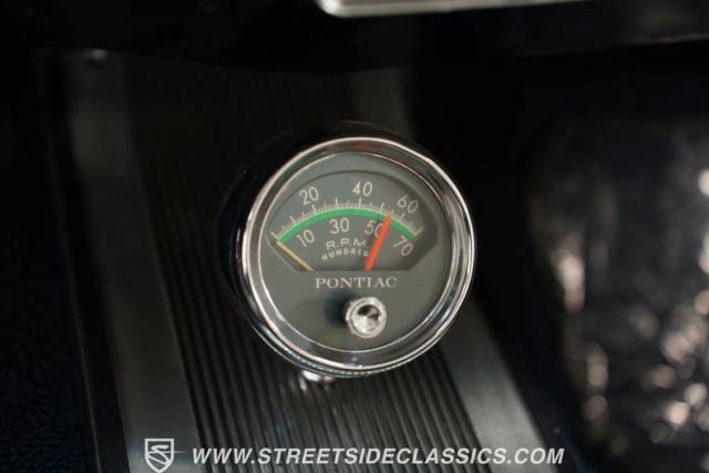 The Grand Prix\'s white vinyl bucket seats feel like Glenn\'s Friendship 7 spacecraft ready for launch. The interior, a sea of white with a well-fitted dash pad and exceptionally preserved original cluster gauges reflects the car\'s age with grace and dignity. The retro AM/FM/AUX stereo system serves as your modern connection to the world outside, much like the intricate communication systems of early spacecraft. The center console remains in very good condition, while the rarely used back seats suggest a history of careful and selective enjoyment.
