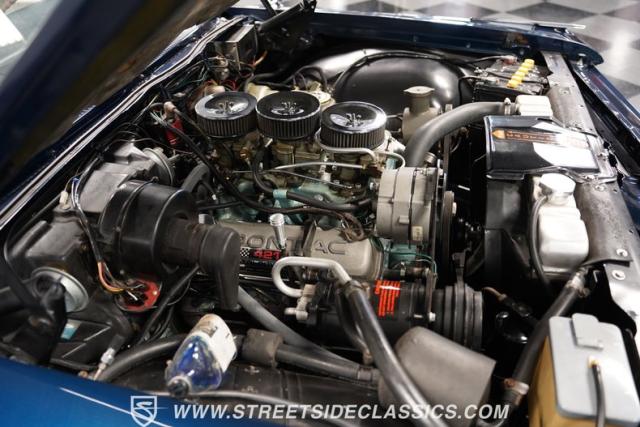 Under the hood lies a 421 V8 engine, a powerhouse reminiscent of the mighty rockets that propelled astronauts into space. The tri-power setup, fine-tuned and ready to roar, is a spectacle of chrome air cleaners and Pontiac 421 valve covers. The engine bay is neat and well-maintained, ready to take on any mission. Accompanied by an H-pipe dual exhaust and a boxed trailing arm rear suspension with an added rear sway bar, this Grand Prix doesn\'t just ride; it glides with the grace and power of a vessel destined for the stars.