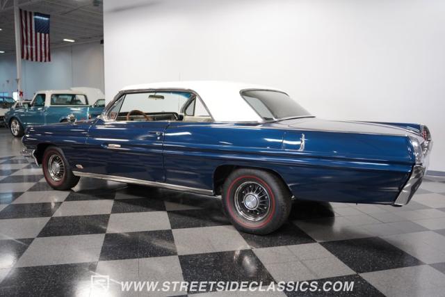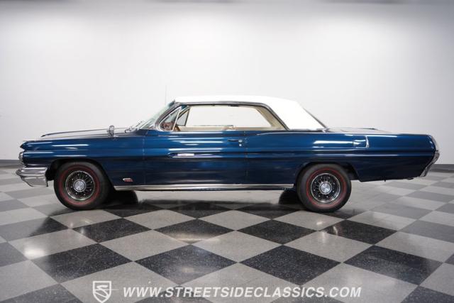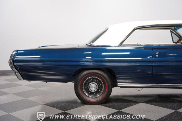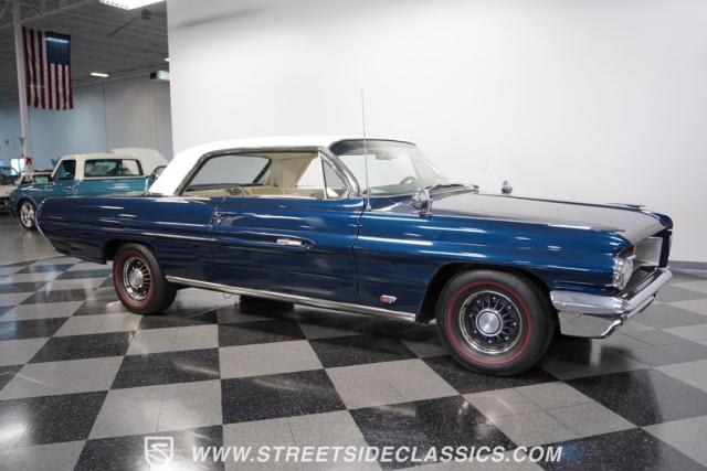 As John Glenn orbited the Earth in 1962, this 1962 Pontiac Grand Prix embarked on a revolution on the ground. Dressed in a mesmerizing metallic blue that mirrors the endless expanse of outer space, this Pontiac Grand Prix also features a secondary white hue. The car is nothing short of a captivating sight, rolling on 8-lug wheels, a coveted feature among enthusiasts, infusing an element of exclusivity.