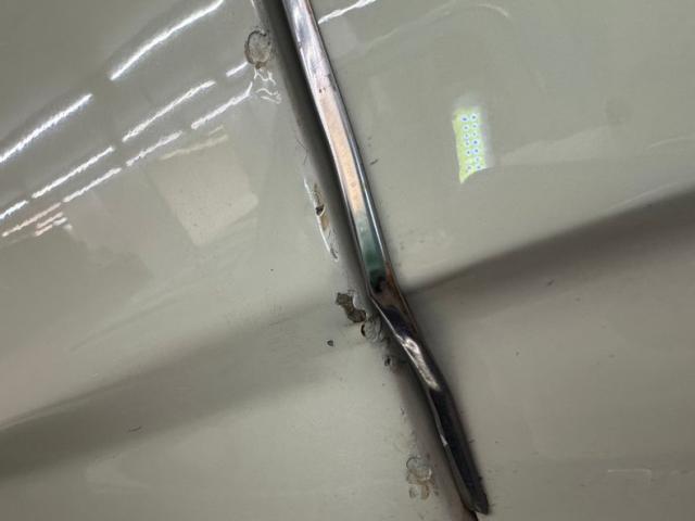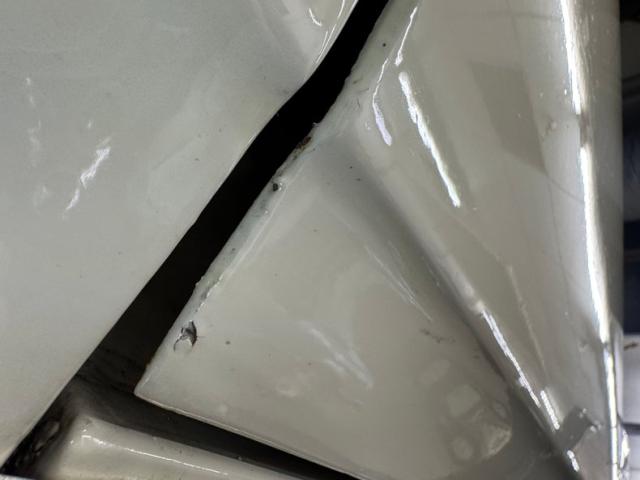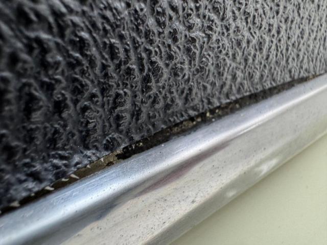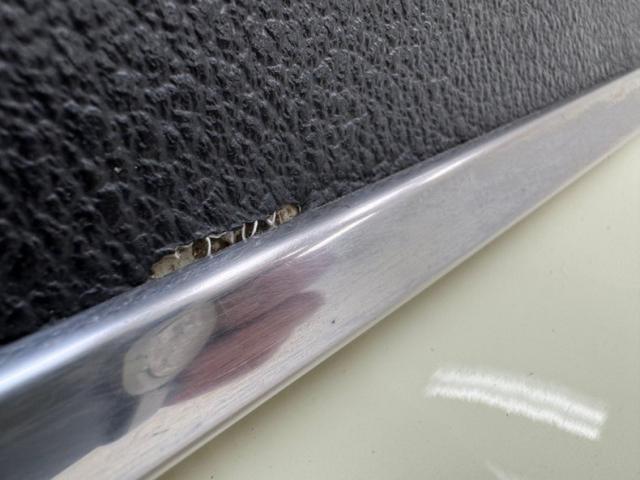 Standard black vinyl door panels host the window crank, arm rest, and door opener and both present cleanly. Black vinyl also dresses the front buckets and rear bench and all of it is in great shape with the exception of a seam split on the passenger upper. A Grant GT steering wheel fronts the dash and shares the column with a Sun Super Tach somewhat obscuring our view of the standard, silver faced gauges. A Jegs triple pack has been added below the dash and the center stack is gussied up with a woodgrain faceplate surrounding the vent lever panel and AM/FM/Cassette radio. More woodgrain adorns the center console which houses a B&M shifter over black loop carpet. The stitched black headliner is in good shape and while up here, we note some cracks in the weatherstrip. The trunk is clean with black carpet over the stamped steel.