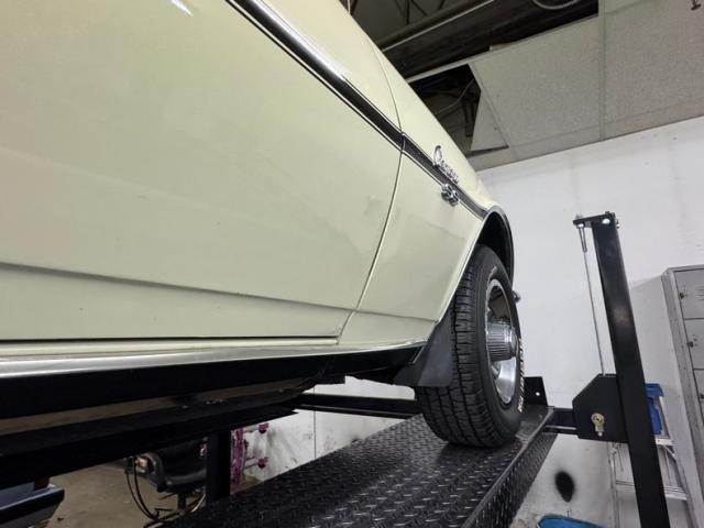 A prime of the carb, a turn of the key, and we\'re off in this ivory pony car, over the test loop with a nice sounding exhaust, plenty of power on hand, straight tracking, and very fine braking. It does everything well and all functions on board operate as expected. While Classic Auto Mall represents that these functions were working at the time of our test drive, we cannot guarantee these functions will be working at the time of your purchase.