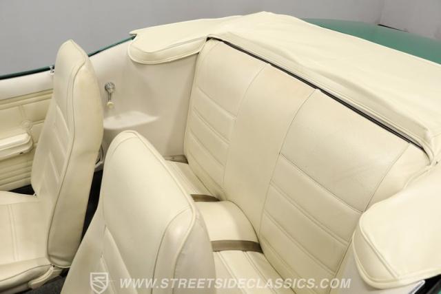 Slip inside and you are greeted by an interior that blends comfort and vintage charm. The white vinyl bucket seats are plush and supportive, making every journey a pleasure. The dash pad is in excellent shape, free from cracks or warping, while the door panels and instrument cluster maintain their factory-correct look. Black carpeting adds contrast and is in great condition, giving the cabin a clean and inviting atmosphere. With features like a power convertible top and classic AM/FM radio, this Mustang offers both convenience and nostalgia.
