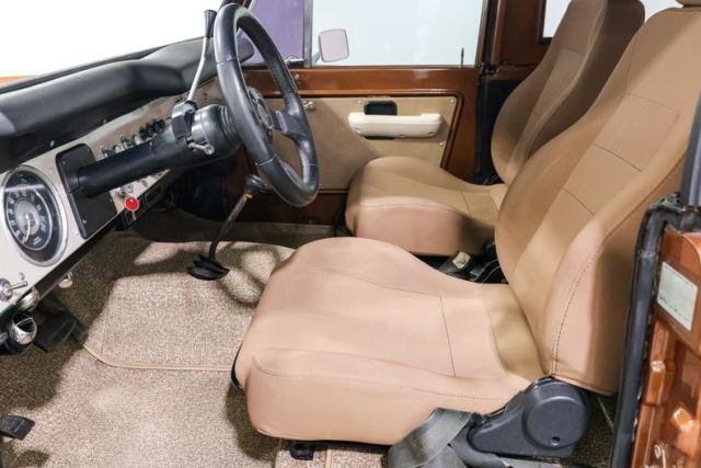Finished in classic Brown over a Tan interior with Tweed accents, this Bronco nails the earthy, rugged look that made these rigs icons of the 1970s. The bucket seats and column shifter keep it period correct, while the insulated removable hard top lets you decide between open air freedom and all season practicality. Dual fuel tanks mean extended range for long hauls or weekend adventures off the beaten path.