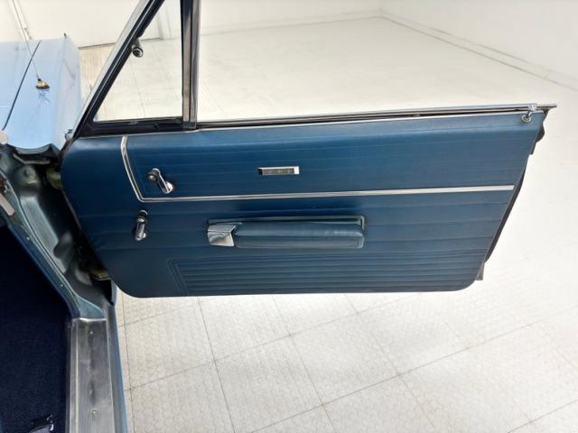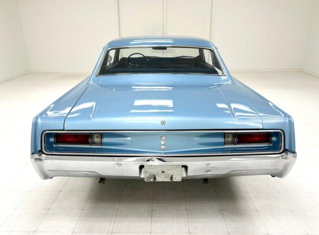 The massive horizontal grille, slightly facelifted for 1968, has inset dual headlights that linger in a cove like a moray eel, while the nose of the grille comes forward, like a cattle prod on a locomotive. And speaking of coves, let\'s head to the back where the rectangle back lights have appeal augmented by their position in a sculpted fascia that provides rounded depressions, like tear ducts, as they lurk within a deep cove created by the deck lid and bumper. And oh the profile! Long flat panels and wide horizontal surfaces, all in repainted Sky Blue Metallic, sends shadows to accentuate every body fold or panel bend. The long hood line slopes with the aid of wide C-pillars and fender skirts sandwich a narrow quarter panel that flows to a protruding rear section, and it\'s all bookended by wrap-around chrome bumpers. 15-inch Magnum 500 wheels are a nice addition here and give this straight car round points of interest. Some of the metal work would benefit from restoration including door handle, emblems, and vent window frame. The other imperfection includes quite a bit of bubbling on the lower edge of bottom panels.