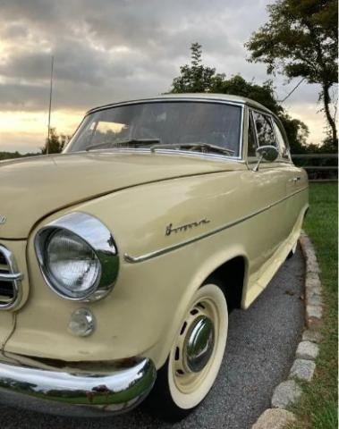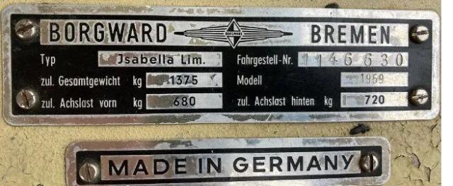 1959, Borgward Isabella Saloon Uniquely Original Condition The Isabella is one of three models produced by Carl F.W. Borgwards company in Bremen, Germany. The two door sedan, referred to as the Saloon, was first produced in 1954. The most complete history of the Borgward Company and the vehicles it manufactured is found on the website of the United Kingdom Borgward Drivers Club (BDC). Today there are numerous Borgward Automobile Clubs around the world. One of the largest and most active is in Germany. In the United States the Borgward was introduced in the mid 1950s and the company built their distribution network from the east coast into the middle of the country. Their manufacture ceased in the early 1960s and the dealerships that sold and serviced them closed. However, the legacy of the marquee continued and for decades has been supported in America by the Borgward Owners Club in Long Island, NY, primarily by the efforts of the founder, Dyck Livant. This 1959 Isabella was a barn find as described by its previous owner in Spokane, Washington. (See January 2022 BDC Newsletter.) Even so, it was in remarkable condition. Since then, and with great care, it has been completely revived through a combined effort by previous and present owners. Exterior: One of the most remarkable attributes of this Isabella is that it retains its original ivory-colored paint in magnificent condition. Only the two front panels below the chrome strip have been repainted. There are a few dimples, but they are a testament to the life and history of the car. There are only a handful of pepper like spots of rust on the front grille diamond and under the front headlights. There is no rust at all on the undercarriage. The chrome all the way around the car is in perfect condition also. The taillights, parking lights and reflectors are flawless and appear as original. The wheels are new and have been painted to match, exactly, the original ivory body color. The tires are brand new whitewalls.
