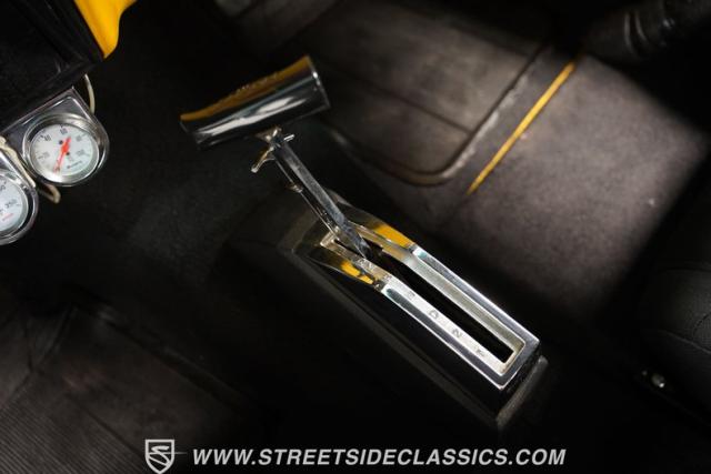 The supercharged 350 V8 is a street-legal monster. Twin Edelbrock 750 CFM carbs feed the hungry 671 blower while forged internals handle the boost - Eagle rods, cast crank, and blower pistons built for battle. Pro Comp 64cc aluminum heads breathe deep through Manley stainless roller rockers while a radical COMP hydraulic cam provides the thunderous idle. The TH350 automatic transmission and custom rear suspension put the power down with authority.