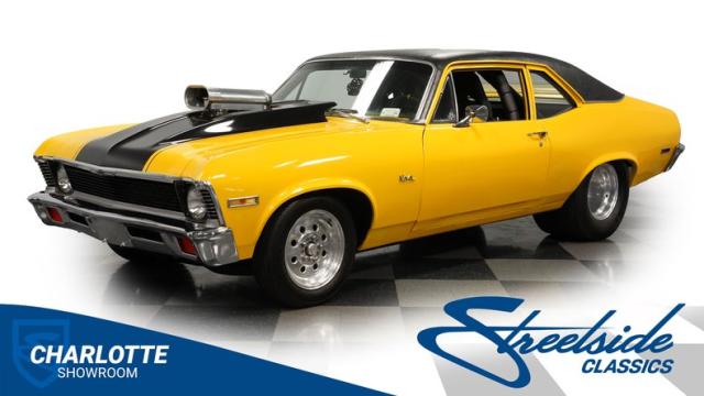 Built for speed and authority, this 1972 Chevrolet Nova Pro Street combines raw street power with a custom chassis. The blown 350 V8 and race-ready setup make this machine ready for action. Call today!