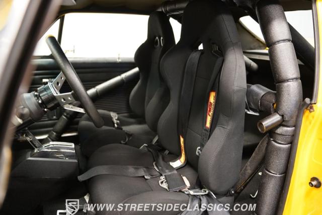 The interior is all warrior-pure competition black with racing buckets and five-point harnesses mounted to the roll cage. A B&M ratchet shifter rifles through the gears with lightning precision. There is no radio, no fancy trim-just the essentials for maximum acceleration and quarter-mile domination. This cockpit was built for one purpose: unleashing pure adrenaline.