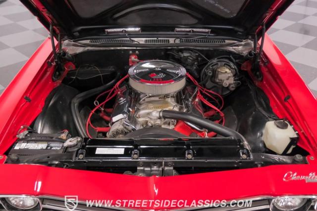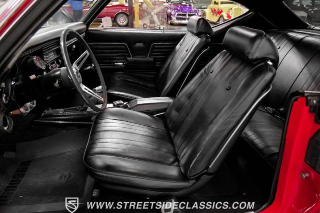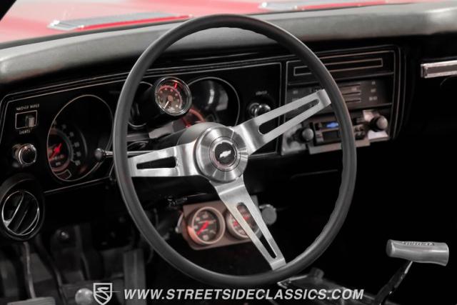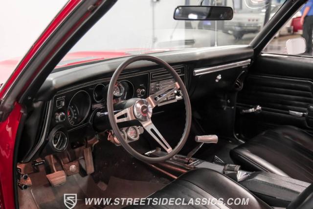 Without a VIN on the stamp pad, we can\'t verify numbers matching, but it does have the correct casting number 3955272 denoting this as a 1969 396 block. So, at a minimum, it is period correct, and it delivers pure muscle car performance through the Muncie M20 4-speed manual transmission. An Offenhauser aluminum intake manifold topped with a dual-line Holley carburetor optimizes the air/fuel mixture. Long-tube headers flow into a dual exhaust system with H-pipe and Flowmaster mufflers for an aggressive tone. Power steering and power front disc brakes provide excellent control, while the 12-bolt Posi rear end puts the power down effectively. Air shocks in the rear allow for adjustable handling characteristics.