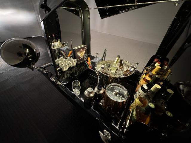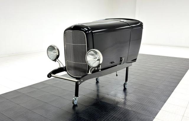 For consignment, an enclosed bar made from a 1932 Ford Roadster with removable legs that have wheels for mobility. This is a sure hit at your next party, company retreat, and perfect if you own one of those storage car clubs with a lounge.