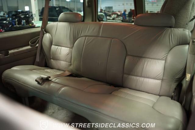 Inside, the gray interior offers a comfortable retreat with practicality and comfort. The captain\'s front bucket seats and rear bench are wrapped in leather, providing ample support for long drives. An overhead console, tilt steering, and a large center console offer convenience at your fingertips. The power driver\'s seat ensures you find that perfect driving position. Entertainment comes courtesy of a cassette/CD radio system, while cruise control makes highway miles a breeze. This spacious Tahoe cabin proves it\'s built for daily driving and weekend getaways.