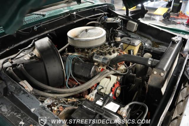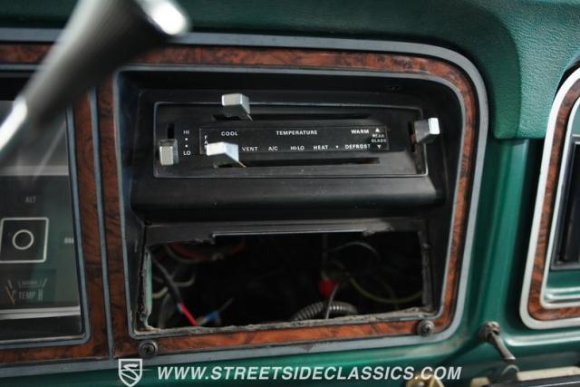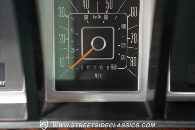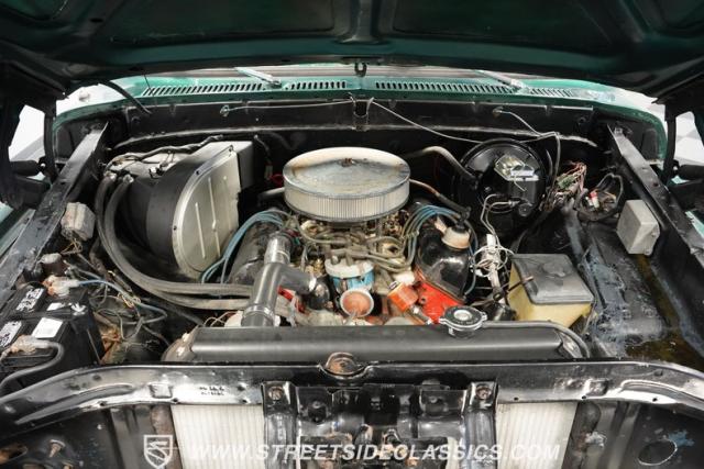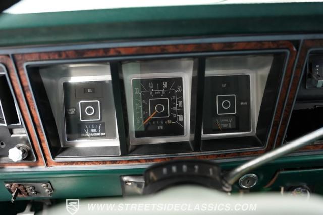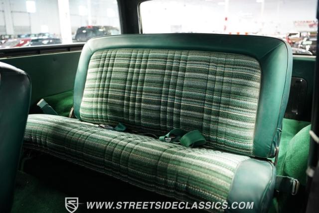 The green interior complements the exterior\'s bold look. The bench seat, covered in vinyl and cloth, accommodates three. The dashboard layout reflects the 1970s design, with straightforward gauges and controls within easy reach. A column-mounted shifter for the 3-speed automatic transmission maximizes floor space. Custom floor mats protect the newer carpets, adding a personal touch to the cabin.
