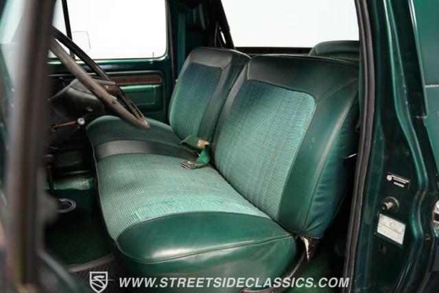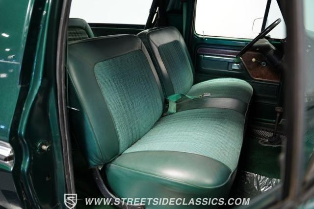 The 5.8 Liter V8 engine powers this Bronco, working with a C6 3-speed automatic transmission to deliver power to all four wheels. A dual exhaust system with a Flowmaster muffler gives the SUV a deep, resonant sound. The Ford 9\" rear axle offers durability for off-road adventures. The front features a solid axle with coil springs and shocks for a comfortable ride, while leaf springs in the rear maintain stability under load. Power steering and brakes enhance maneuverability on city streets and backcountry trails alike.