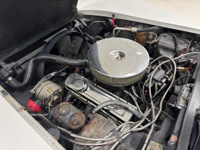 Classic White lacquer paint colors this car like a sleek Stormtrooper from another planet! Just like the Star Wars characters, this one is accented with black on the front bumper guards, the rear bumper guards, the T-tops, and of course, the tires. Those 225/70R15 meats surround 15\" Luxor Wire wheels which will also help you identify your Corvette among other C3\'s and the knock offs wear a black Luxor cap. Chrome headers emerge from the underside and ride the rocker panels, giving way to the big chrome side pipes and their vented heat shields and out-turned tips. Fifteen vents are cut into each side of the power bulge on the hood while hidden headlights ahead help define the Corvette allure. Imperfections include some wavy paint and a chip on the hood, some chips on the nose, scratches, paint runs and painted over chips.