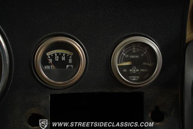 Inside, this CJ retains its relatively no-frills militaristic personality. A center console separates a pair of comfy, newly recovered bucket seats. A power-assisted three-spoke tilt wheel sits ahead of an offset gauge cluster, featuring a big 85 mph speedometer flanked by a pair of auxiliary gauges measuring volts, engine temperature, and oil pressure. HVAC controls consist of a series of push/pull and twist knobs, making it easy to keep your eyes on the road through the upright, fold-down windshield. A powder-coated expletive bar gives the front passenger something to grab onto when the road disappears and their center of gravity shifts outside their comfort zone.