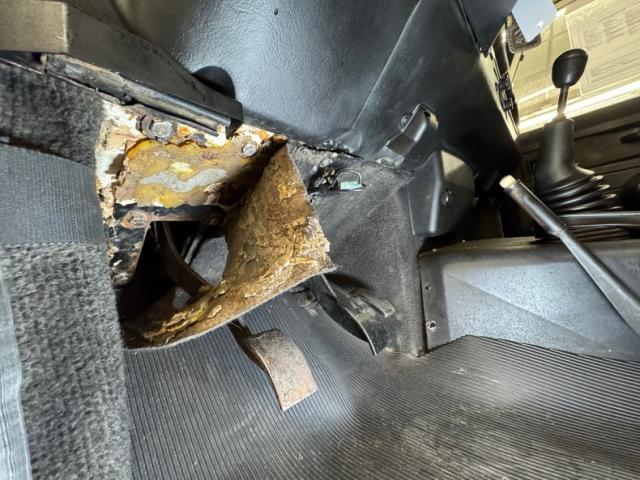 Under the hood, we have a 2.5 liter four cylinder diesel, fuel injected and rated at 68 horsepower. A 5-speed manual Leyland LT77 transmission splits power through 5.89 gears at both ends. Power disc brakes are employed in front and power drums in back. Our consignor reports recent work includes a refurbished braking system including master cylinder, new injectors, diesel coils, fuel pump, and starter.