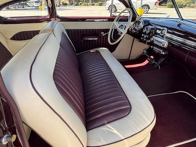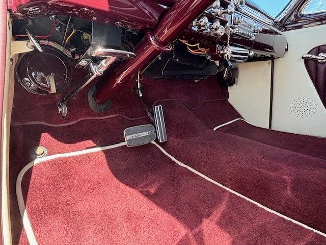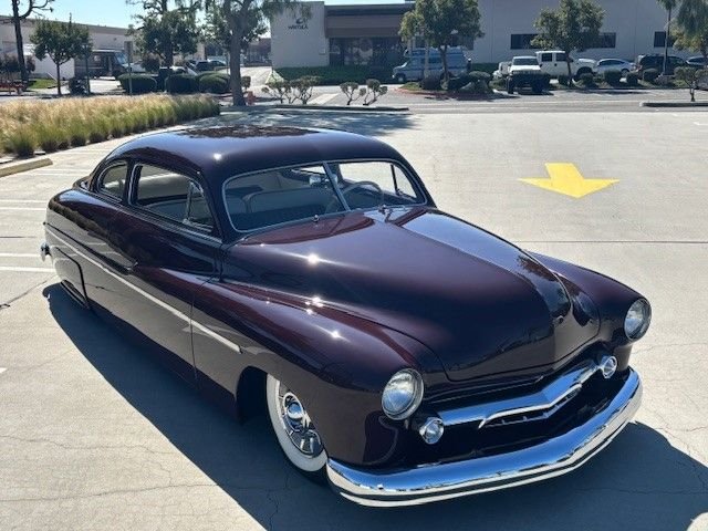 This 1949 Merc Custom Sled is a nut and bolt full rotisserie restoration just completed with about 1,000 break in miles is full on show quality all around. Chopped, slammed and smoothed, this iconic “Merc Sled” is resting on a custom one off chassis with four corner ShockWave air ride suspension with a C notch in the rear to provide the correct amount of clearance. Polished engine accessories and polished and color matched fender wells are a nice touch. Body mods include 2 inch chop at the B pillar with no change to the A pillar and a reshape to the C pillar. All corners of the body have been rounded and headlights and taillights frenched. The laser straight body has been finished in a show quality 1940 Ford Maroon paint. The drive line tunnel was replaced to ensure clearance for the driveshaft and the floorboards were replaced. The front grill was hand made from a 1954 Ford grill and was V’d to match the opening of the Merc. Prior to assembly the body was sprayed with Lizard Skin then had Dyna-Mat installed. Power is supplied by a healthy 351 Cleveland Ford motor with an automatic transmission and tied to a Ford 9 inch. All this with power steering, power disc brakes, power windows, AC and heat with hidden controls, and a hidden sound system to roll with your favorite tunes. To finish off the look, cool 57 Cadillac hub caps with bullets wrap her up just right. This rare Investment grade Merc is one for your collection. Offered at $185,000 OBO. For more information please visit our website at www.classiccarmarketing.net or call us at 619-972-7073. Please mention the vehicle you are inquiring about so we can respond promptly. Inspections are encouraged before any purchase, of any vehicle, anywhere.