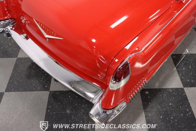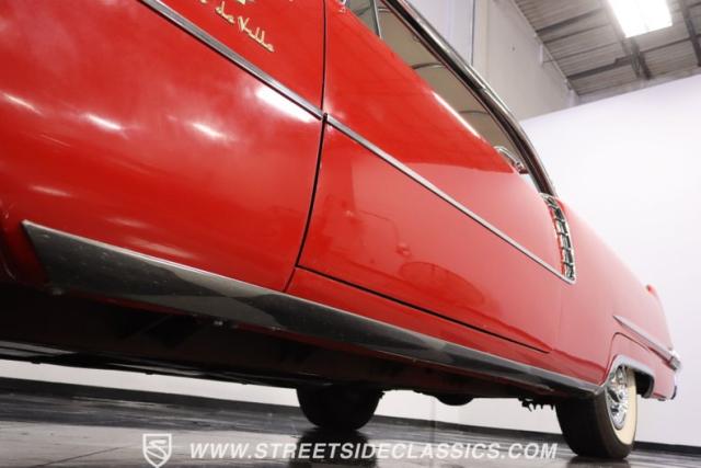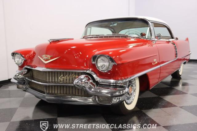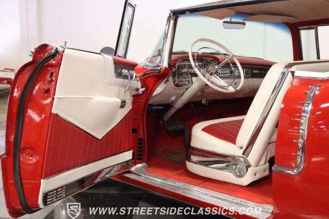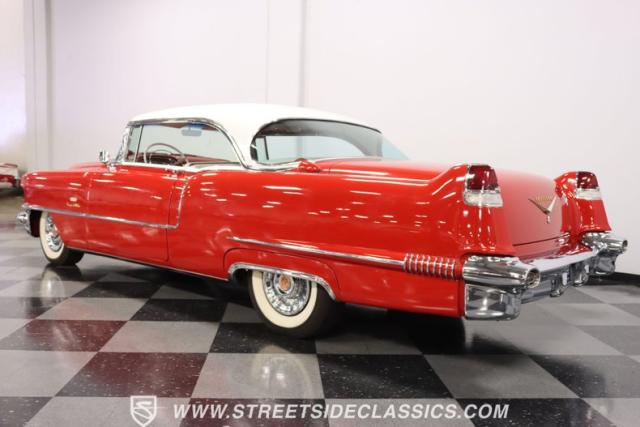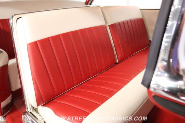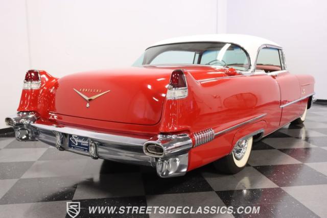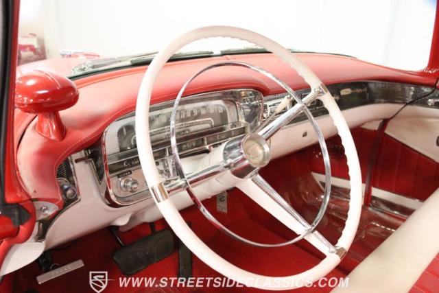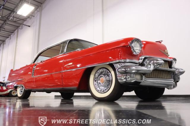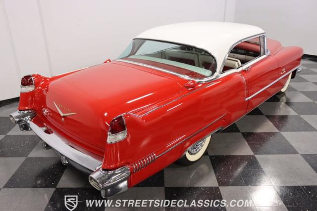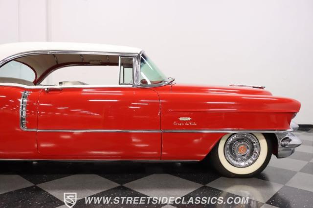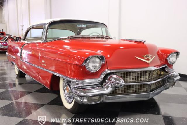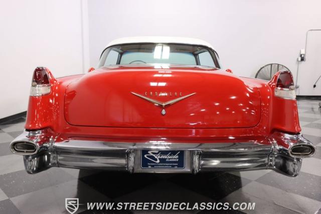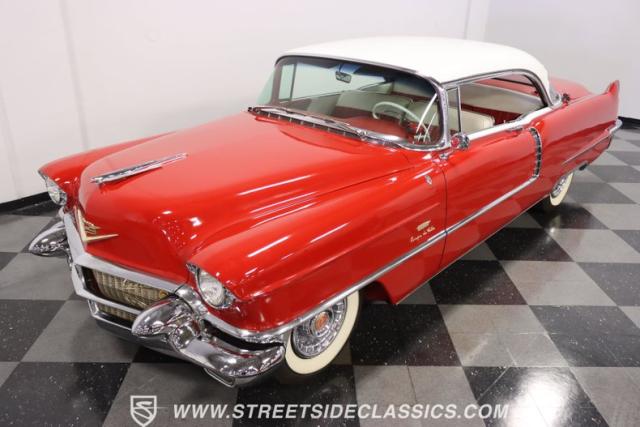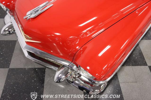 If you\'re wondering why a car like this can look so good, it\'s because it\'s coming off nearly a quarter-century under the same care. It was even fully repainted around half-way to upgrade this to a vibrant red with a pristine white roof. And a car like this 1956 Cadillac Series 62 Coupe DeVille has all the best expensive details, like the whitewall tires, fender skirts, the gas cap hidden in the flip-up tail light, and the dual exhaust routed through the rear bumper. So the exterior looks like pure rolling opulence that has been treated with the highest respect.