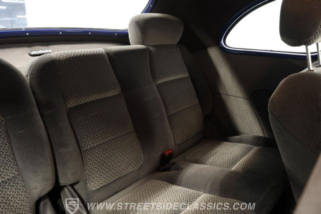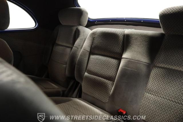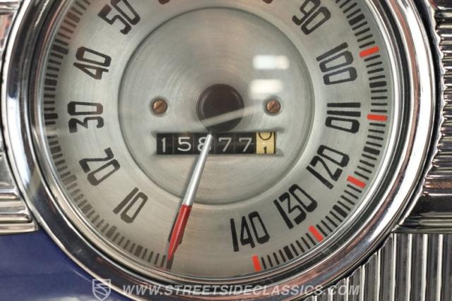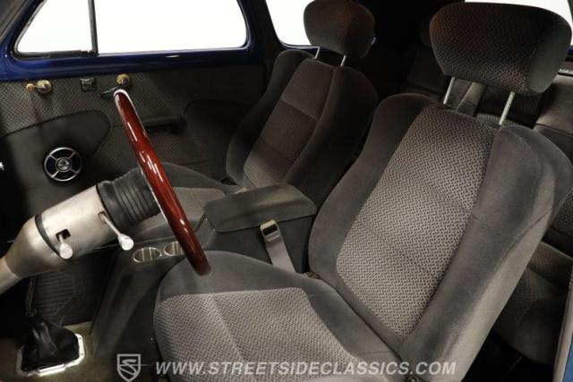 Step inside, and you\'ll find a thoughtfully upgraded interior that strikes the perfect balance between vintage charm and modern comfort. The gray two-fabric cloth seats provide both support and style, with later-model seats front and rear and a power driver\'s seat for added convenience. A matching center console with drink holders, custom Grant GT steering wheel on a tilt column, and upgraded gauges create an inviting space for both driver and passengers. The interior paint matches the body\'s rich two-tone blue metallic, while the cassette player and aftermarket door speakers add a touch of nostalgia with practical function.
