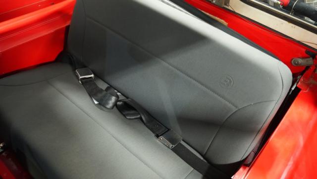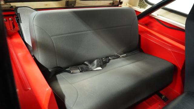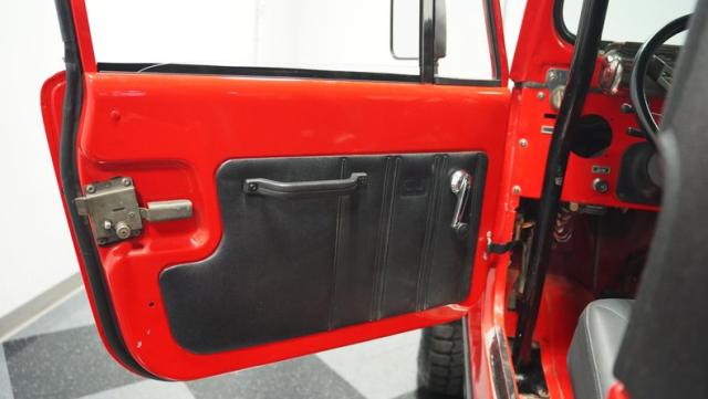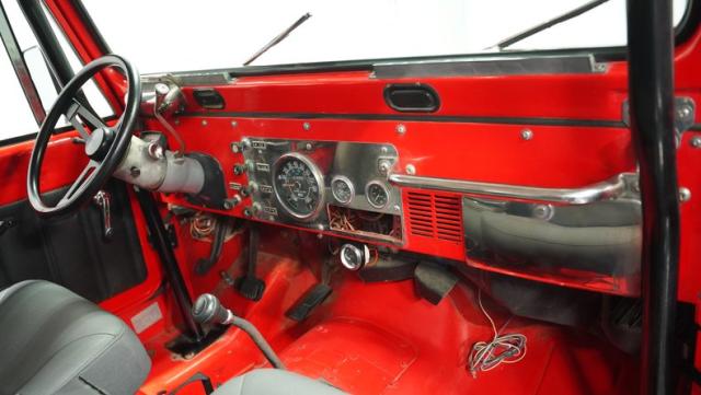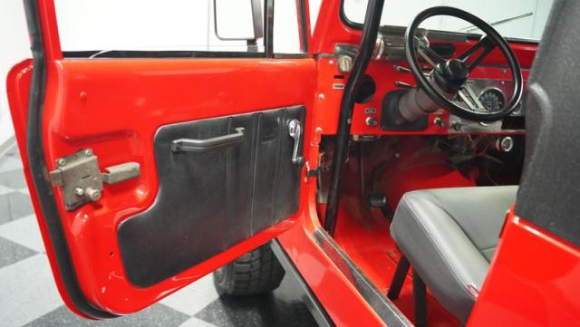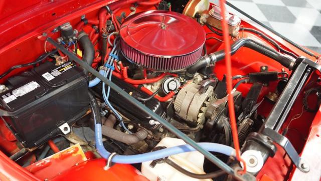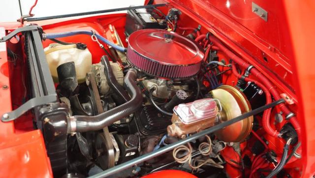 For muscle, a GM 4.3-liter V6 with electronic fuel injection pairs with a TH350 3-speed automatic transmission. The powertrain feeds into Dana 30 front and AMC 20 rear axles with 4.10 gears for maximum torque delivery. Double shocks up front and leaf springs all around keep everything planted, while power disc brakes up front and power drums in back provide reliable stopping power. The FlowMaster single exhaust adds a muscular tone to the package.