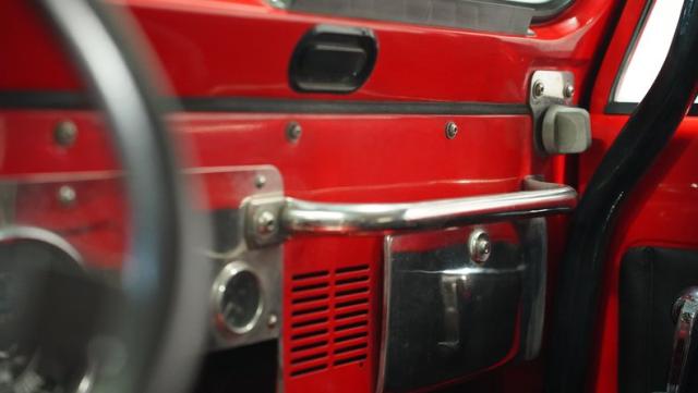 The black and red interior delivers pure functionality with BestTop water-resistant bucket seats in dark gray. A lockable center console provides secure storage space, while the enhanced roll cage includes strategically placed grab handles for passenger security. The simplified cockpit layout focuses on the core elements needed for serious off-road adventures - no distractions, just pure driving focus.