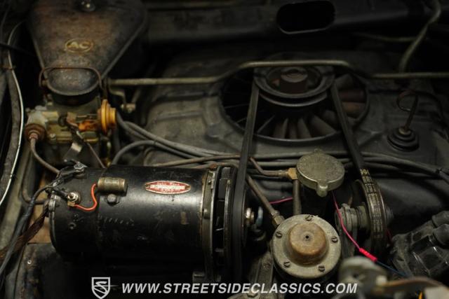 The rear-mounted 164 cubic inch flat-six engine provides the power through a 2-speed Powerglide automatic transmission. Coil spring suspension with shocks handles both front and rear duties, while drum brakes at all four wheels provide stopping capability with power assist. The single exhaust system features an aftermarket muffler, and the air-cooled engine design eliminates the need for a traditional cooling system. The 12-volt electrical system powers the AM radio and other components.