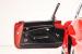 TRUNK COMPARTMENT: The underside of the trunk lid and jamb are painted slick just like the body. The lock mechanism and weatherstrip were both replaced. Inside is detailed and painted red. It has the correct divider and rubber mat. Under the mat is the jack and spare also restored.